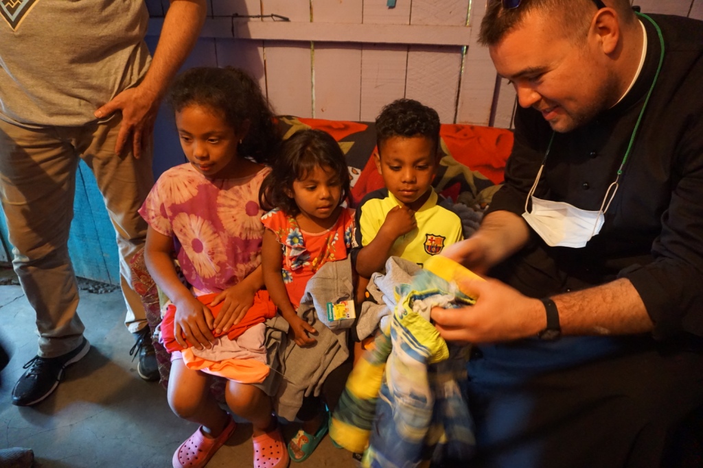 The others started the process of delivering gift bags to families. Missioners headed out in small groups to visit the homes of families that were receiving the gift bags. Fr Travis accompanied them, performing a house blessing for each of the families. Our groups had a great afternoon. There were able to visit and even make tortillas with the families. All talked of how much they enjoyed these visits. The families were so grateful for the small gifts we gave; the Honduran people are truly wonderful! They took turns delivering bags and in their downtime, they built the remaining beds.